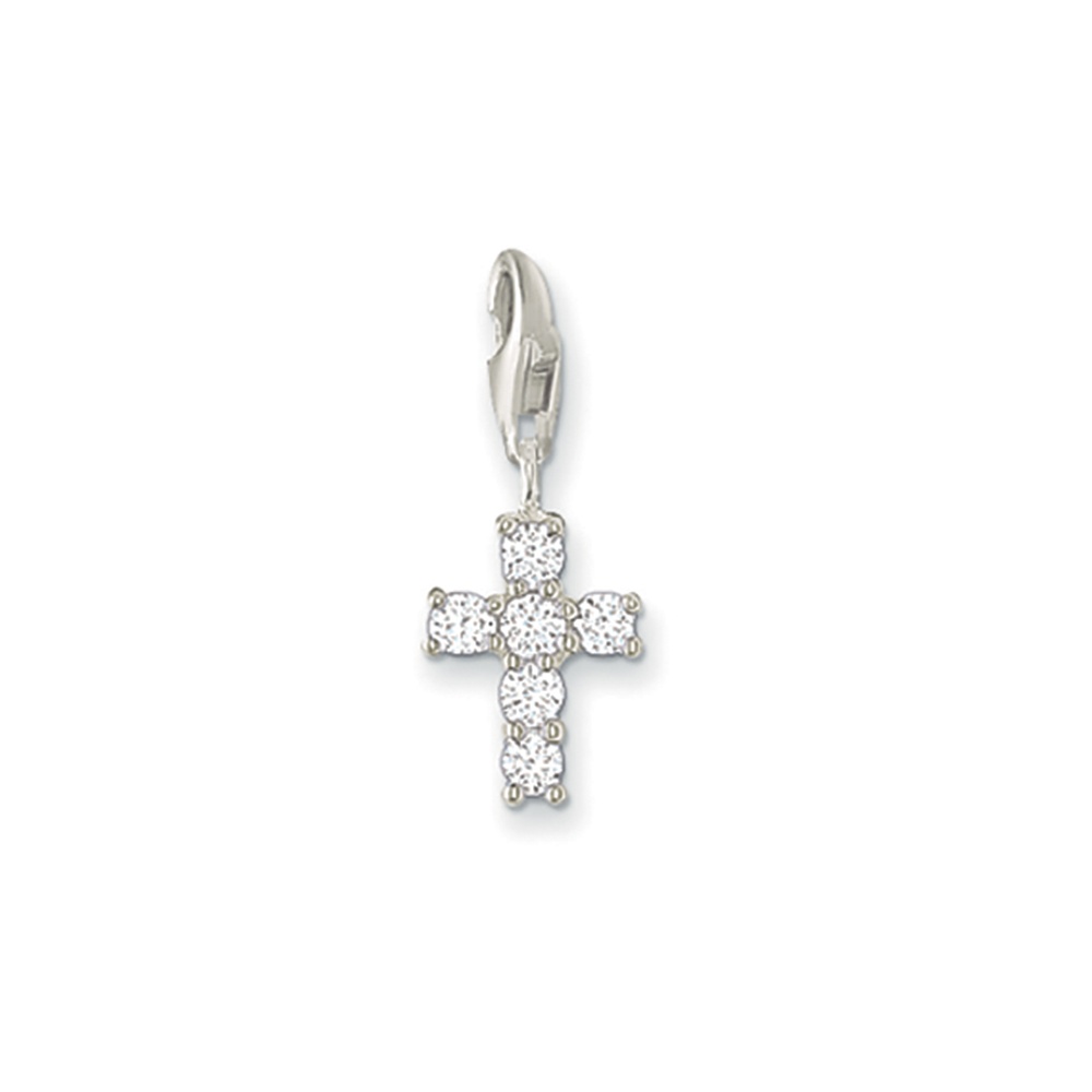 Crafted from sterling silver, this cross charm is adorned with several white zirconia making it sparkle beautifully. A symbol of faith or a simple style statement, this design will make a great addition to any bracelet!