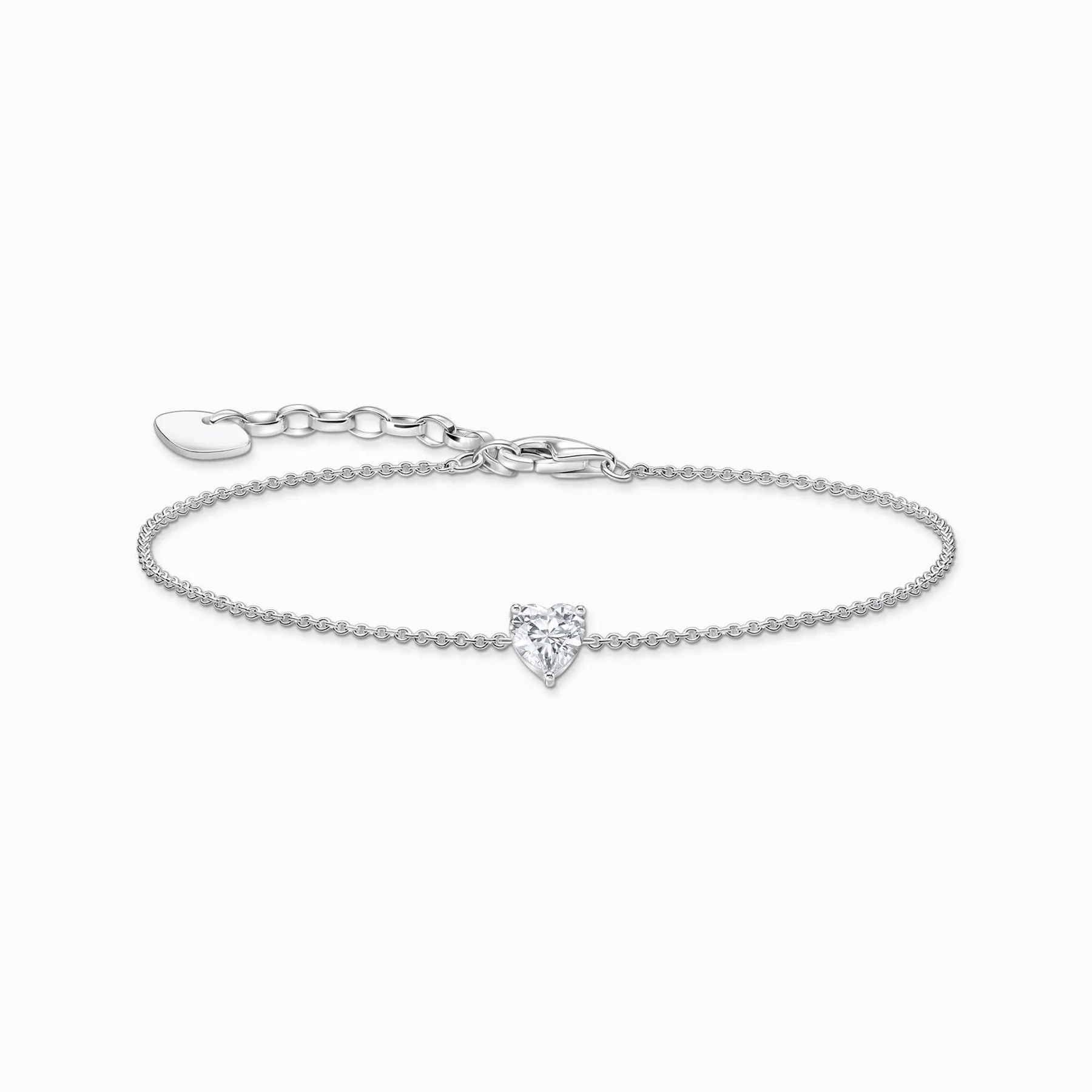 Bracelet with large heart pendant Romantic sparkle: Whether worn with a business look, in your free time or with an elegant evening outfit – this delicate silver bracelet with a large white heart-cut zirconia stone enhances any outfit. – Made from recycled 925 silver – Adjustable in length from 16 to 19 cm