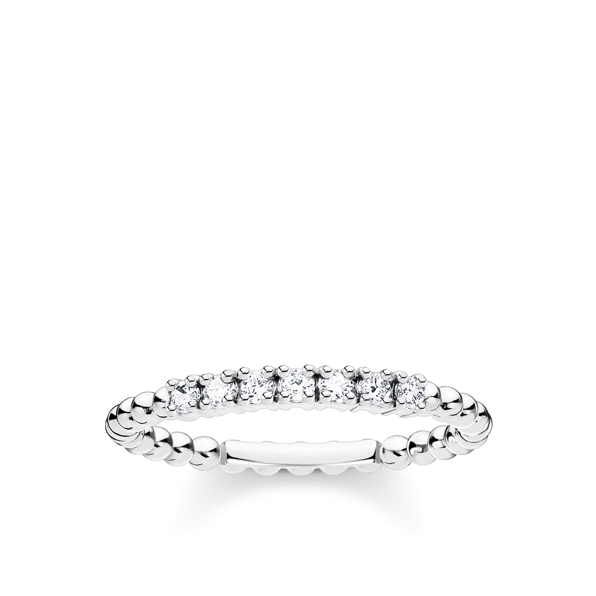 Elaborately handcrafted from high-quality 925 Sterling silver, this ring impresses with its elegant appearance. The combination of a spherical structure and sparkling white zirconia stones in pavé setting creates a modern contrast. Worn on its own or stacked with other rings, this piece of jewellery gives every look that extra touch.