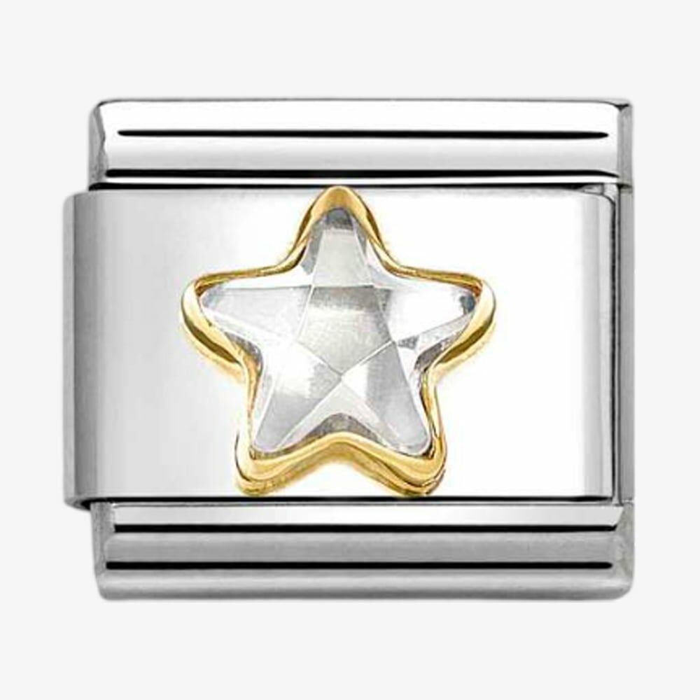 This Nomination classic collection charm features a stainless silver base with an 18ct gold heart, highlighted by a dazzling cubic zirconia star in the centre.