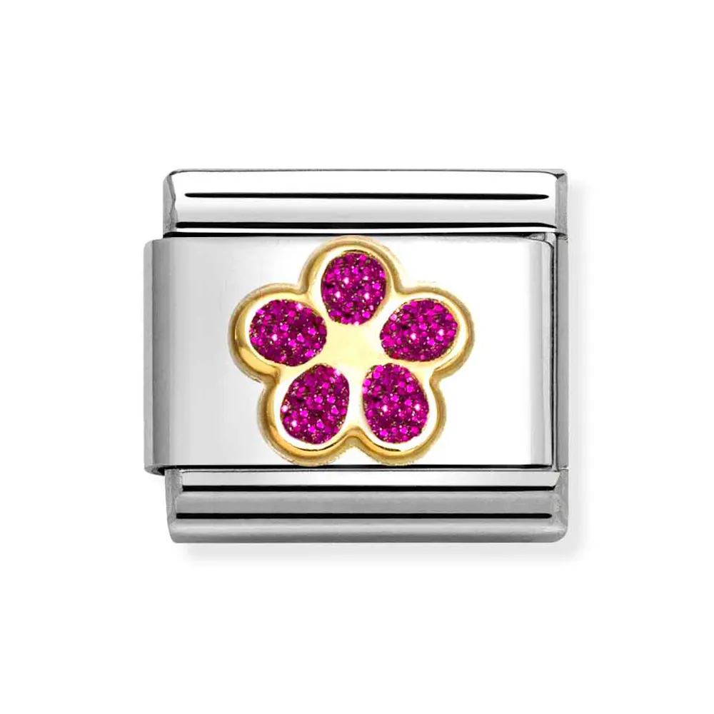 Create floral vibes with this wonderful Nomination flower Charm, in gold with sparkling fuchsia glitter enamel.
