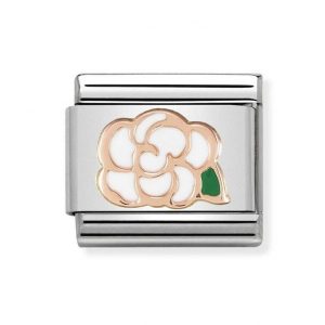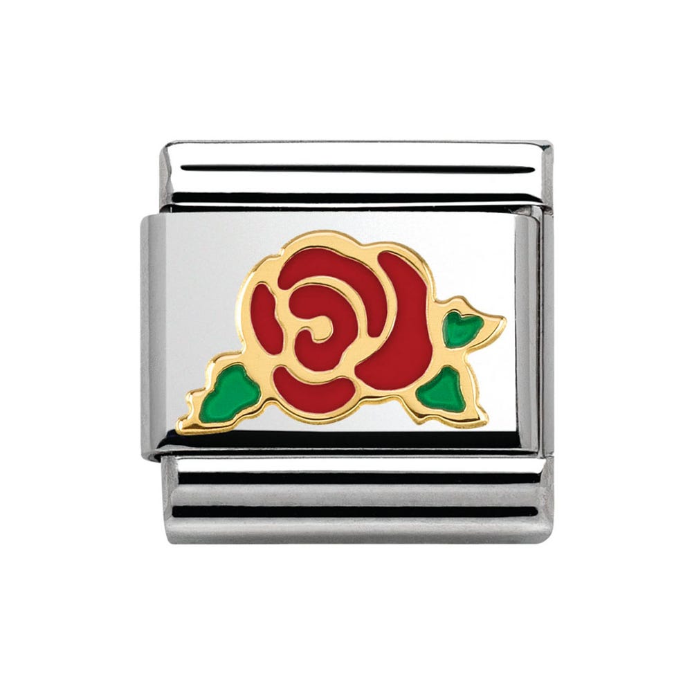 La Vie en Rose Red Rose Classic Charm from Nomination, crafted from 18ct gold in a classic rose design, decorated with red and green enamel. Crafted from stainless steel and 18ct gold with enamel.