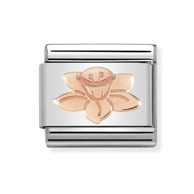 Celebrate new beginnings or simply your love of the daffodil with the classic 9ct Rose Gold Daffodil Charm by Nomination. What better way to see in The Spring season.