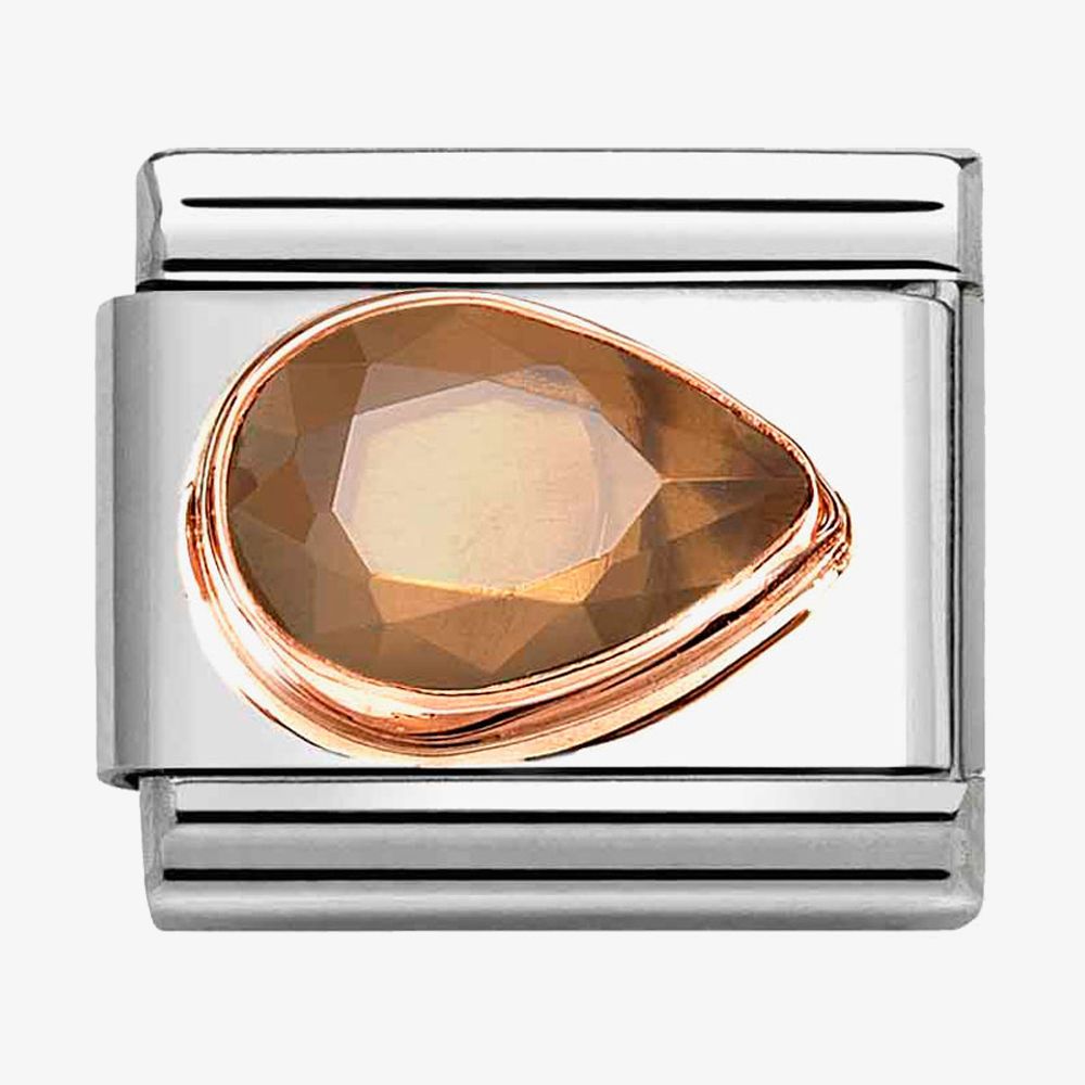 This Nomination charm features a pear-shaped cubic zirconia stone in a captivating smokey, delicately outlined in 9ct rose gold.