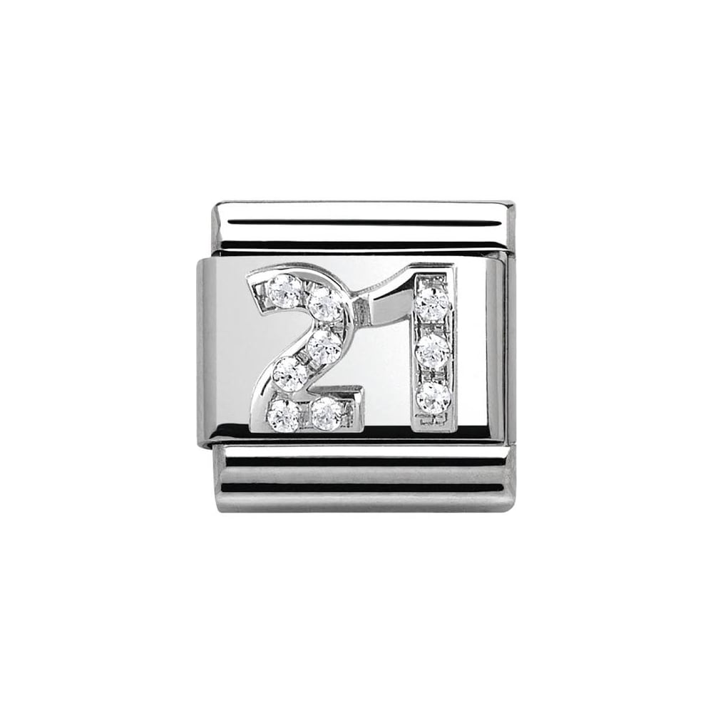 The Nomination Classic Silver Number 21 Charm is the perfect gift to celebrate a special age. This beautiful charm is crafted from stainless steel and sterling silver with sparkling cubic zirconia detail.