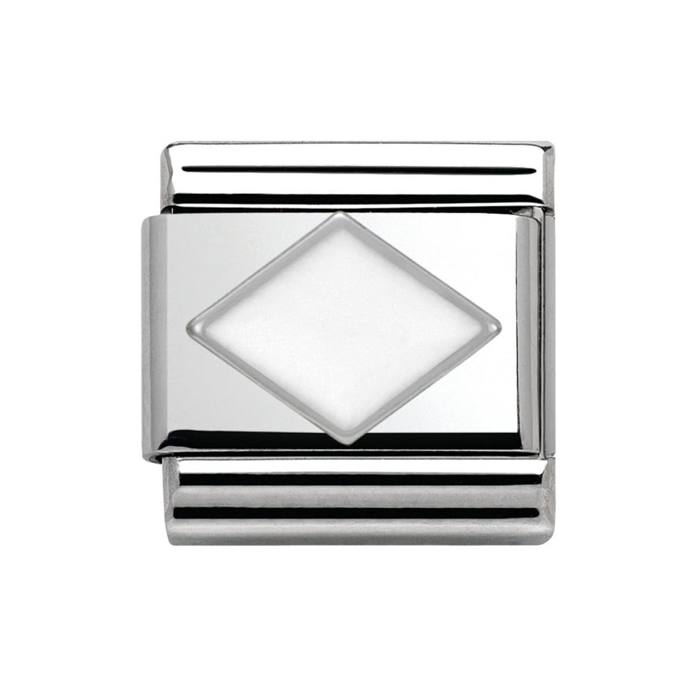 Nomination Classic charm featuring a white rhombus. This charm is crafted using enamel and silver.