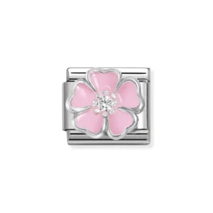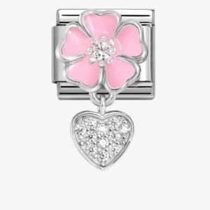 Nomination Silver Pink Peach Blossom Heart CZ Dropper Charm